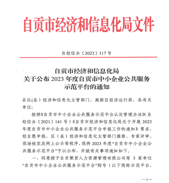 自贡聚贤人力资源管理有限公司以需求为导向,为中小企业提供培训、信息、技术、咨询等公共服务,主动开展特色化、个性化服务产品供给,在解决中小企业共性需求、畅通信息渠道、增强市场竞争力等方面发挥好支撑和示范带动作用。近日,自贡聚贤人力资源管理有限公司成功申报自贡市中小企业公共服务示范平台。