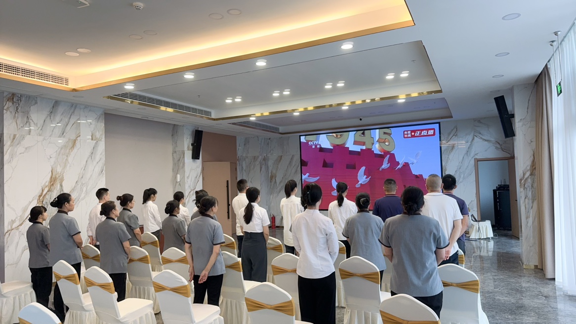 9月3日,纪念中国人民抗日战争暨世界反法西斯战争胜利80周年大会在京隆重举行,盛大的阅兵仪式举世瞩目。bv1946伟德集团积极组织全体干部职工集中观看此次阅兵直播,共同见证这一庄严肃穆、振奋人心的历史时刻。