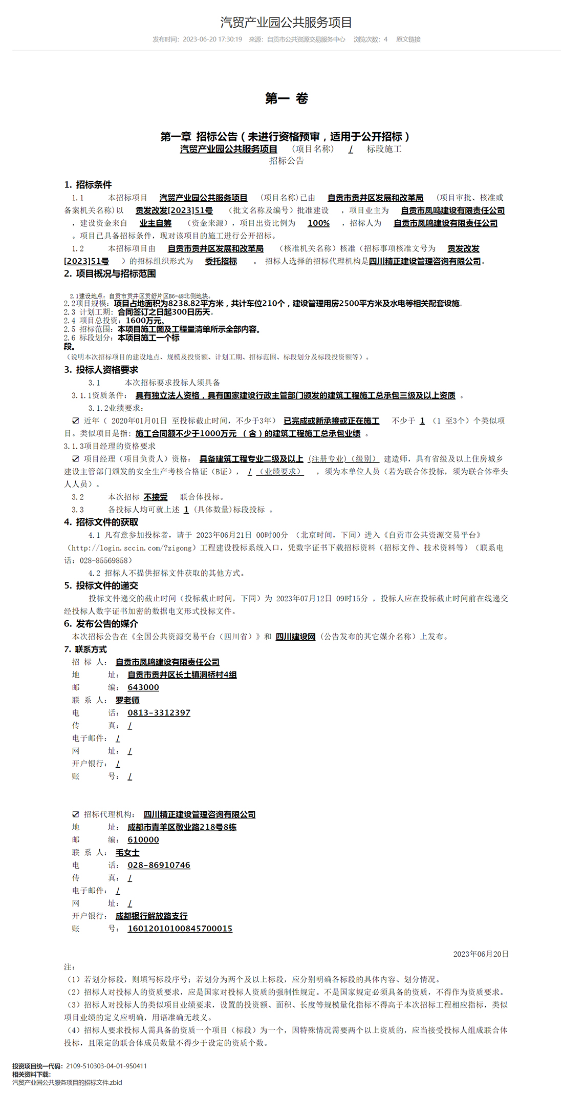 下一条 : 自贡航空产业园中小企业创业园标准化厂房(一期)室外围墙工程采购公告