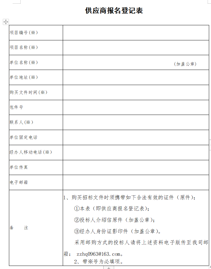 (1)供应商报名登记表加盖公章;