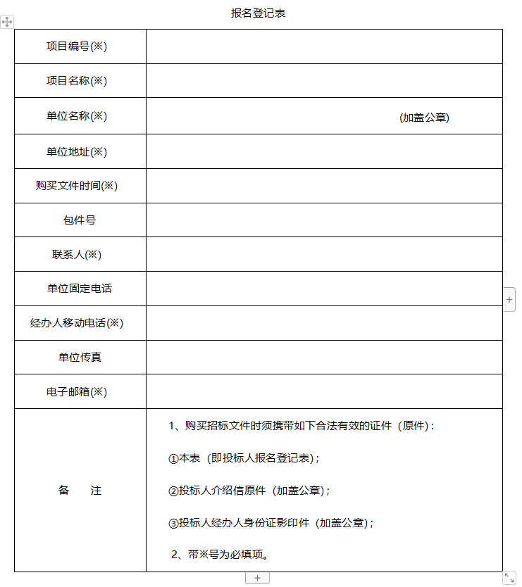③ 报名登记表(加盖投标人公章);
